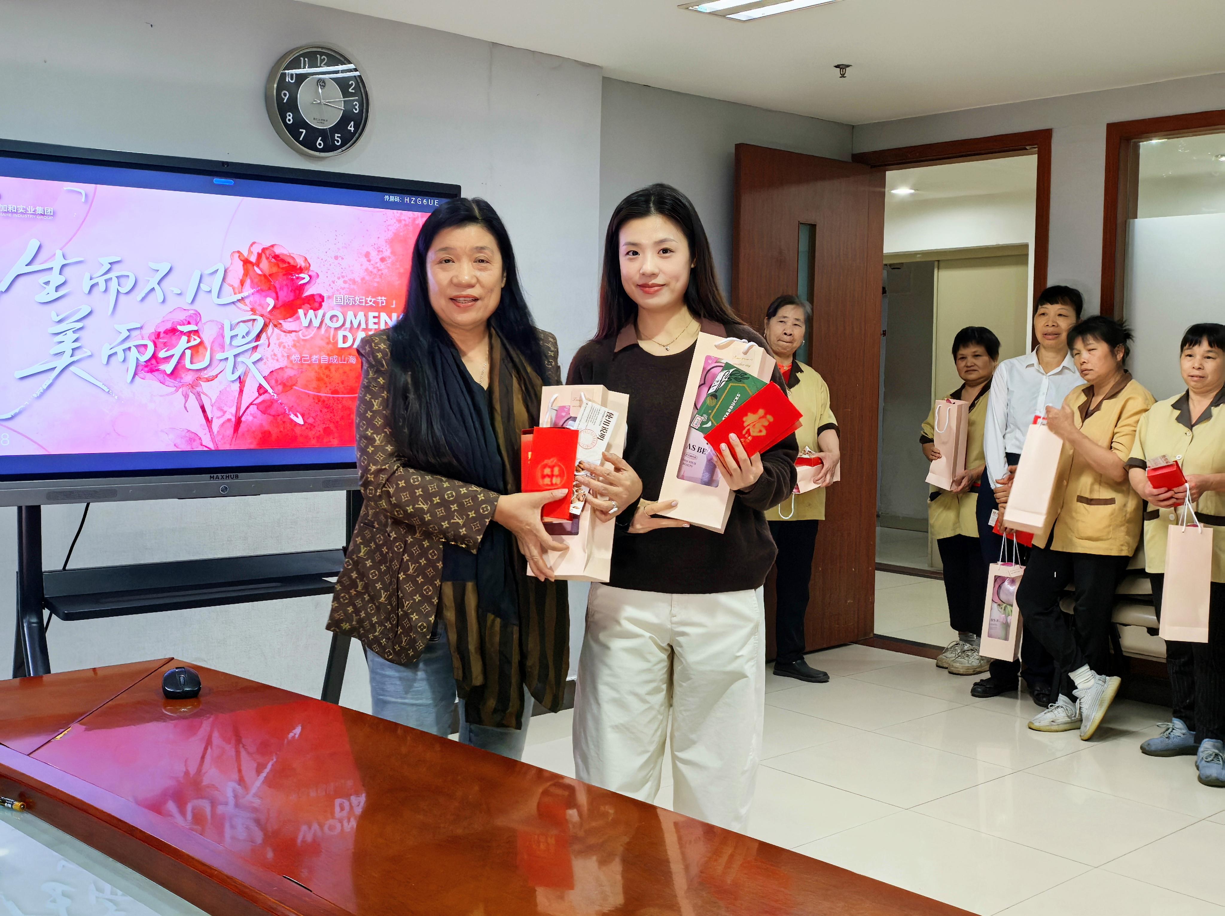 随后,谢小玲董事为全体女职工送上了精心准备的慰问礼品与节日红包,感谢大家的辛勤付出。在温馨愉悦的氛围中,全体女职工与领导合影留念,定格下这份专属的美好与感动。活动现场,大家脸上洋溢着幸福的笑容,彼此分享着喜悦,充分感受到了公司大家庭的温暖与关怀。